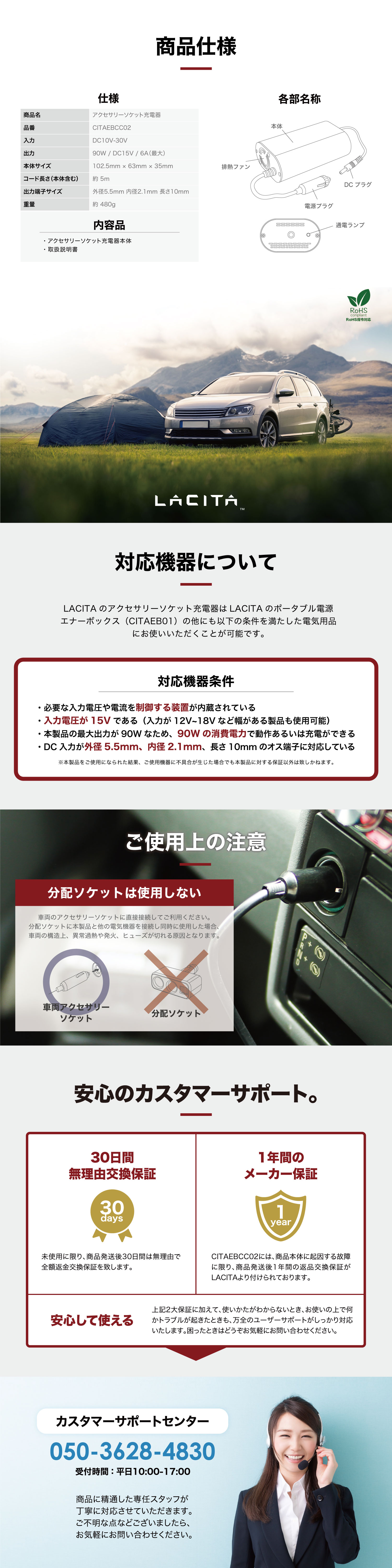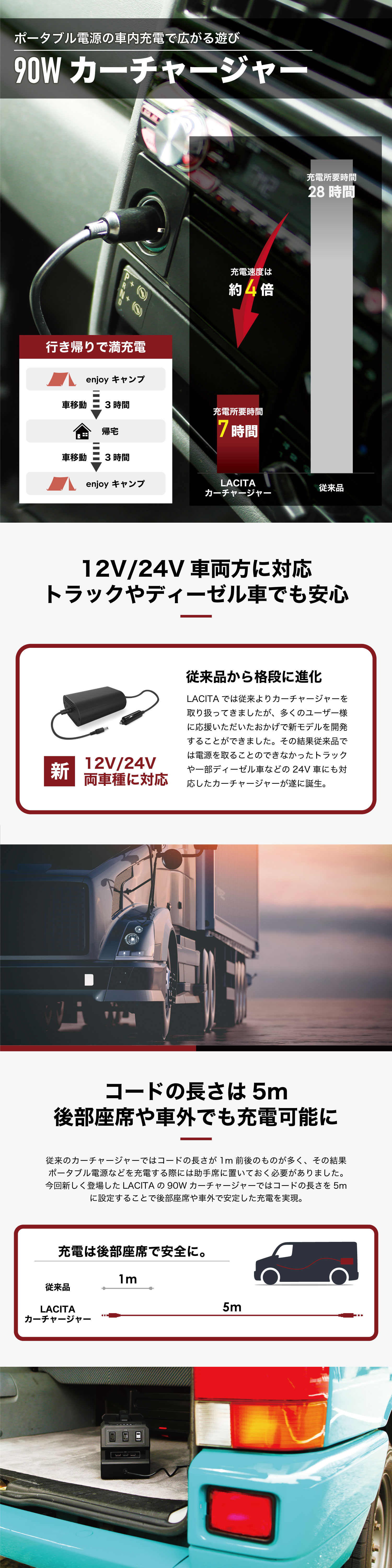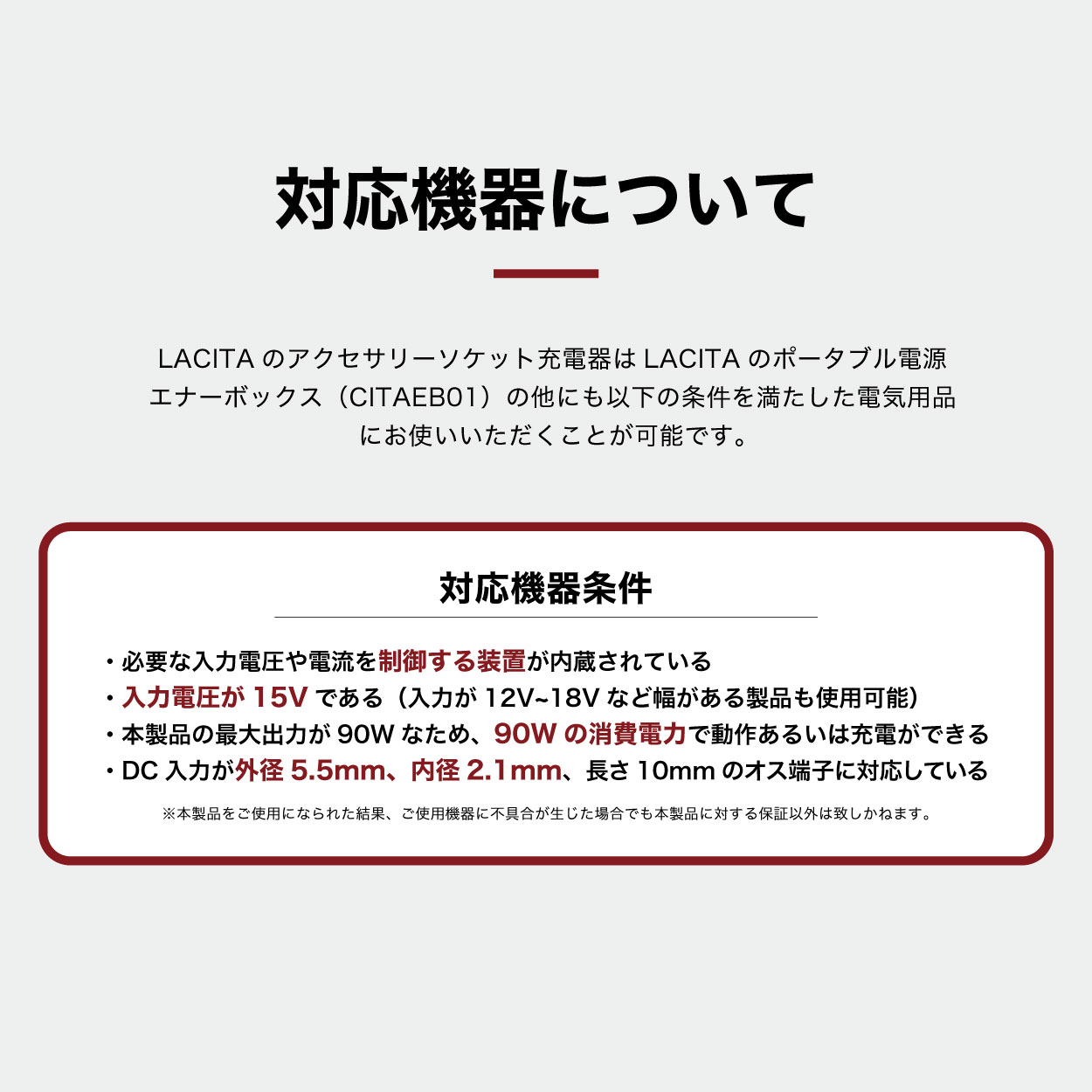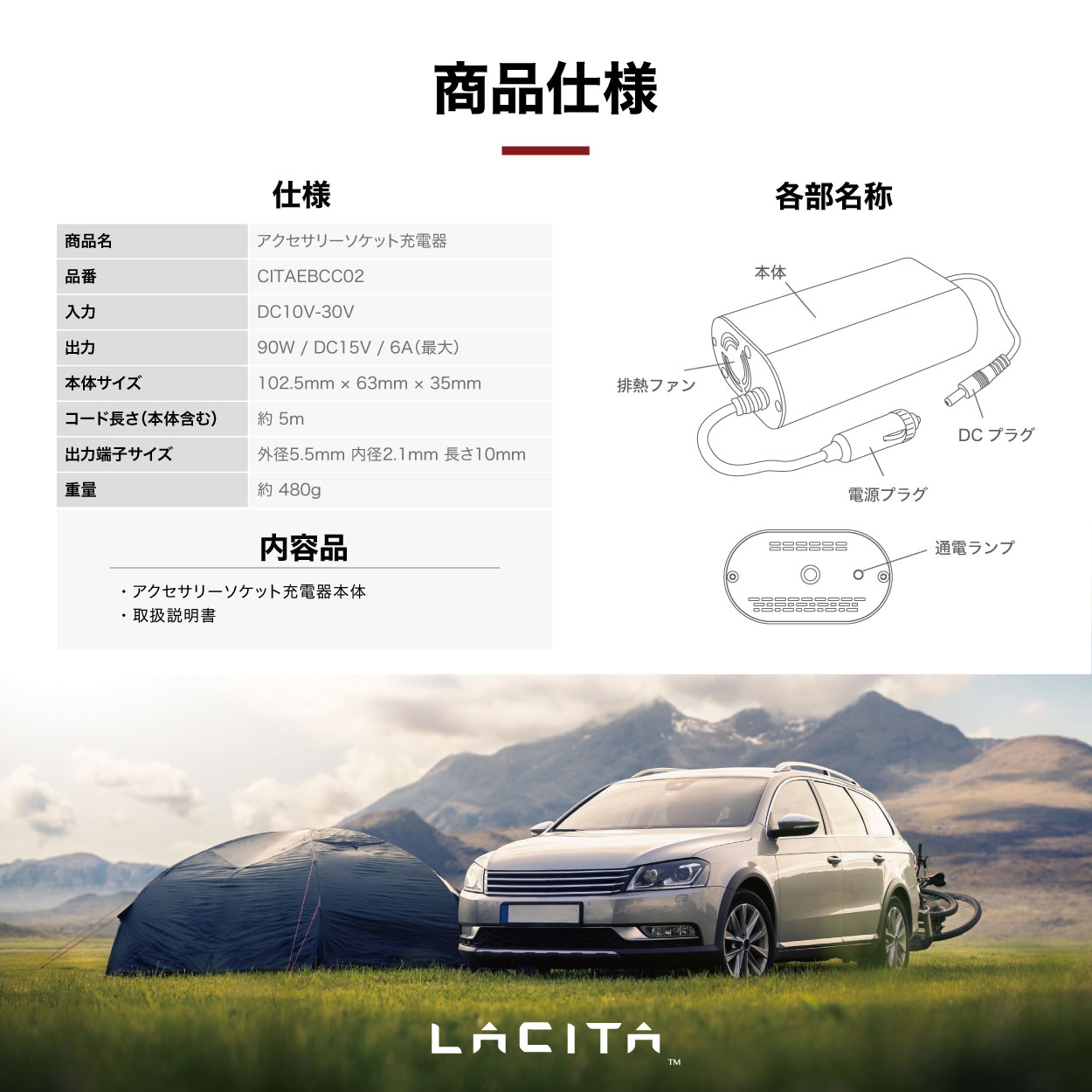 LACITA カーチャージャー 15V 90W アウトドア アクセサリーソケット